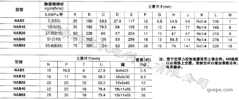 | | 尺寸:见下详图 | | 用途:制动刹车 | | 型号:NAB-5,NAB-10,NAB-20 | |
